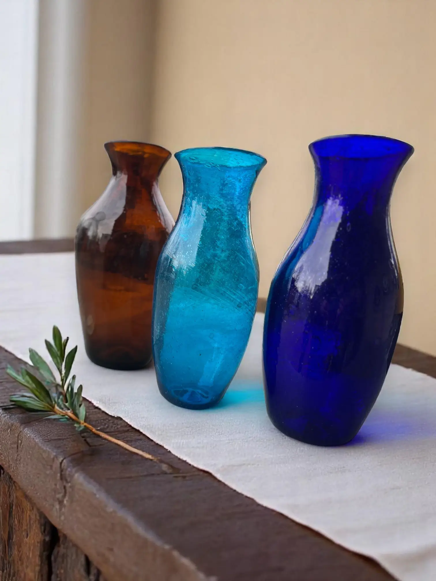 Geschmolzen und von Hand geformt, wird es zu etwas Sinnvollem – Vasen, Kerzenhaltern und zeitlosen Objekten voller Licht und Wärme.