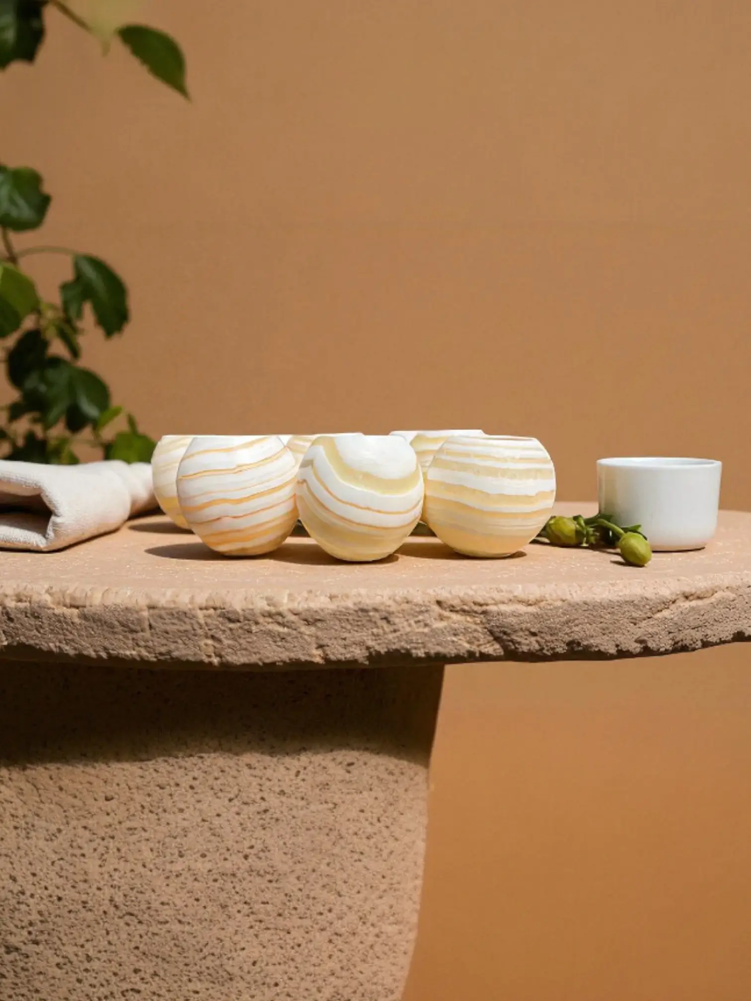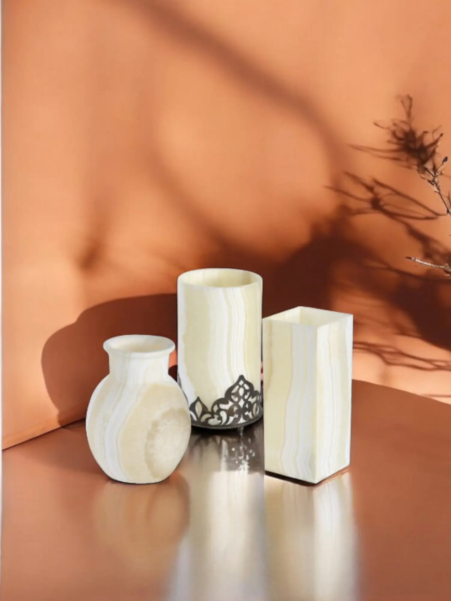 Découvrez la beauté lumineuse de l’albâtre, façonné à la main avec soin.