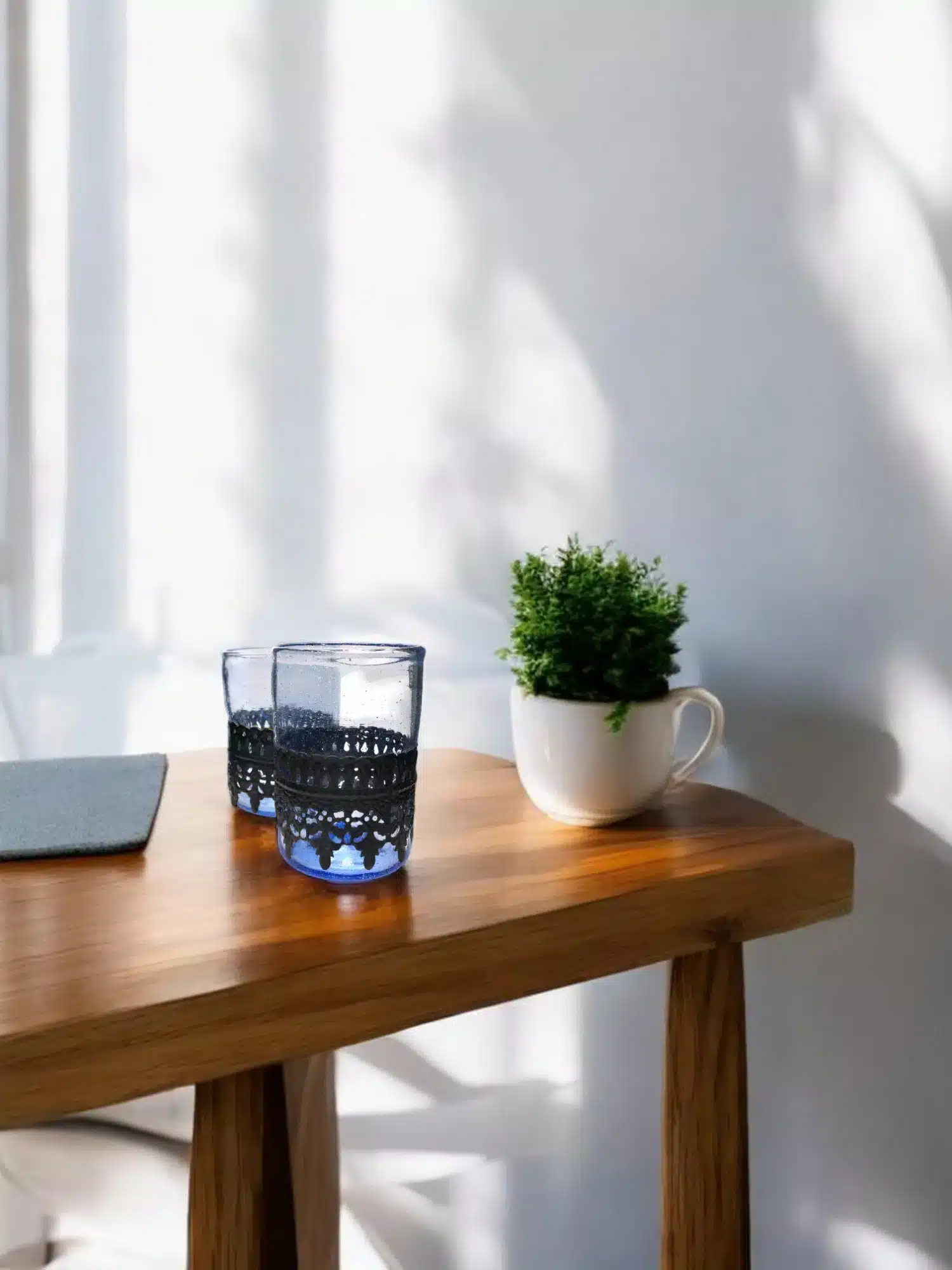 Ces verres font partie d’un processus qui valorise le temps et le geste. De la collecte des bouteilles délaissées au façonnage du verre en fusion – chaque étape est manuelle. Le résultat ? De subtiles imperfections, une base mate et une histoire gravée dans chaque gorgée. Un beau contrepoint à l’uniformité industrielle – et une discrète célébration du design circulaire.