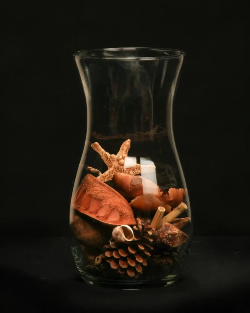 Crystal-clear hot-cut glass beautifully showcases flowers, candles, or natural elements.