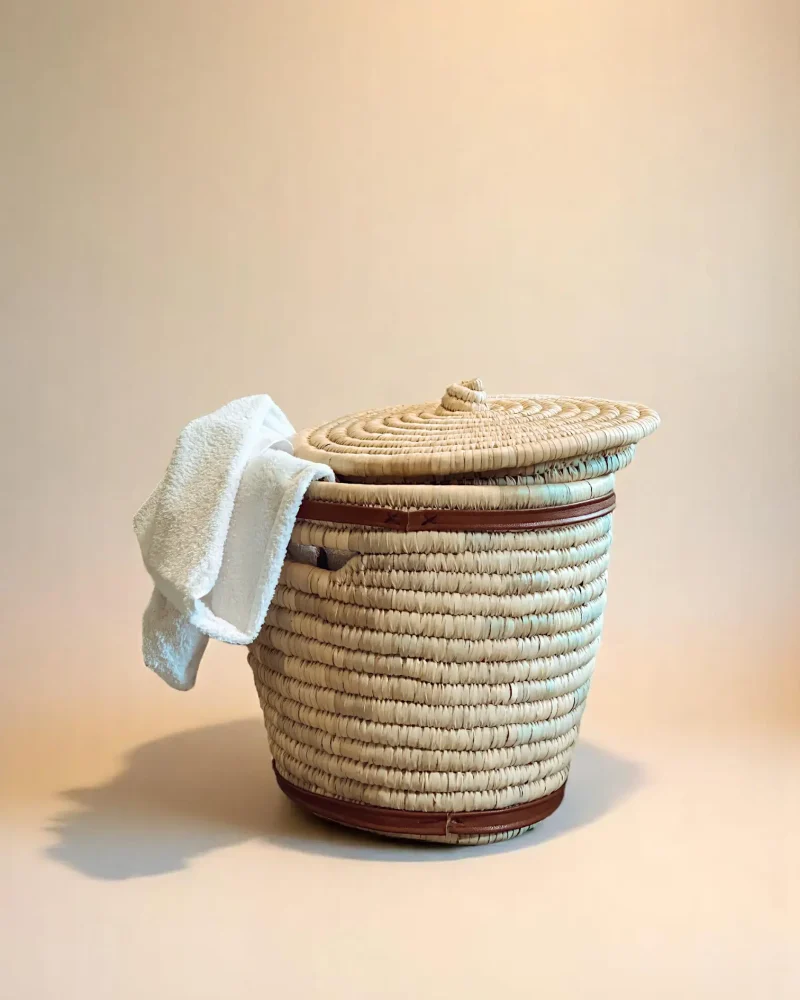 Perfect for laundry, towels, or pantry goods like potatoes — the wide opening and snug lid keep everything tucked away neatly.
