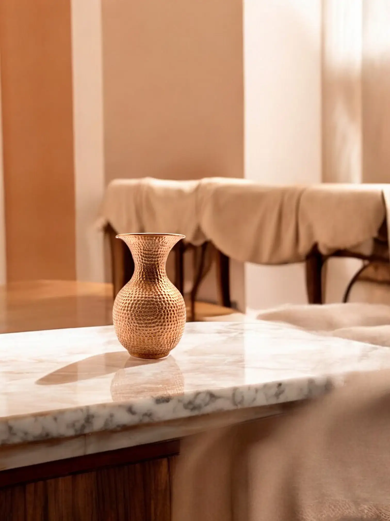 Made from pure copper, this vase offers natural strength and longevity with an earthy, elegant presence.