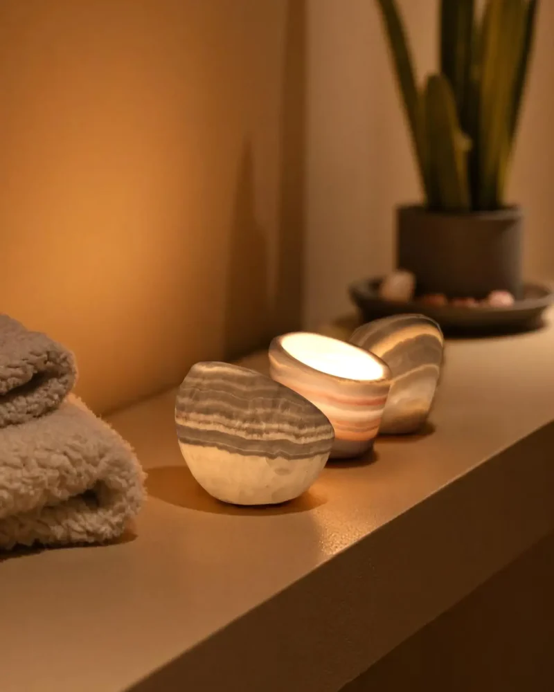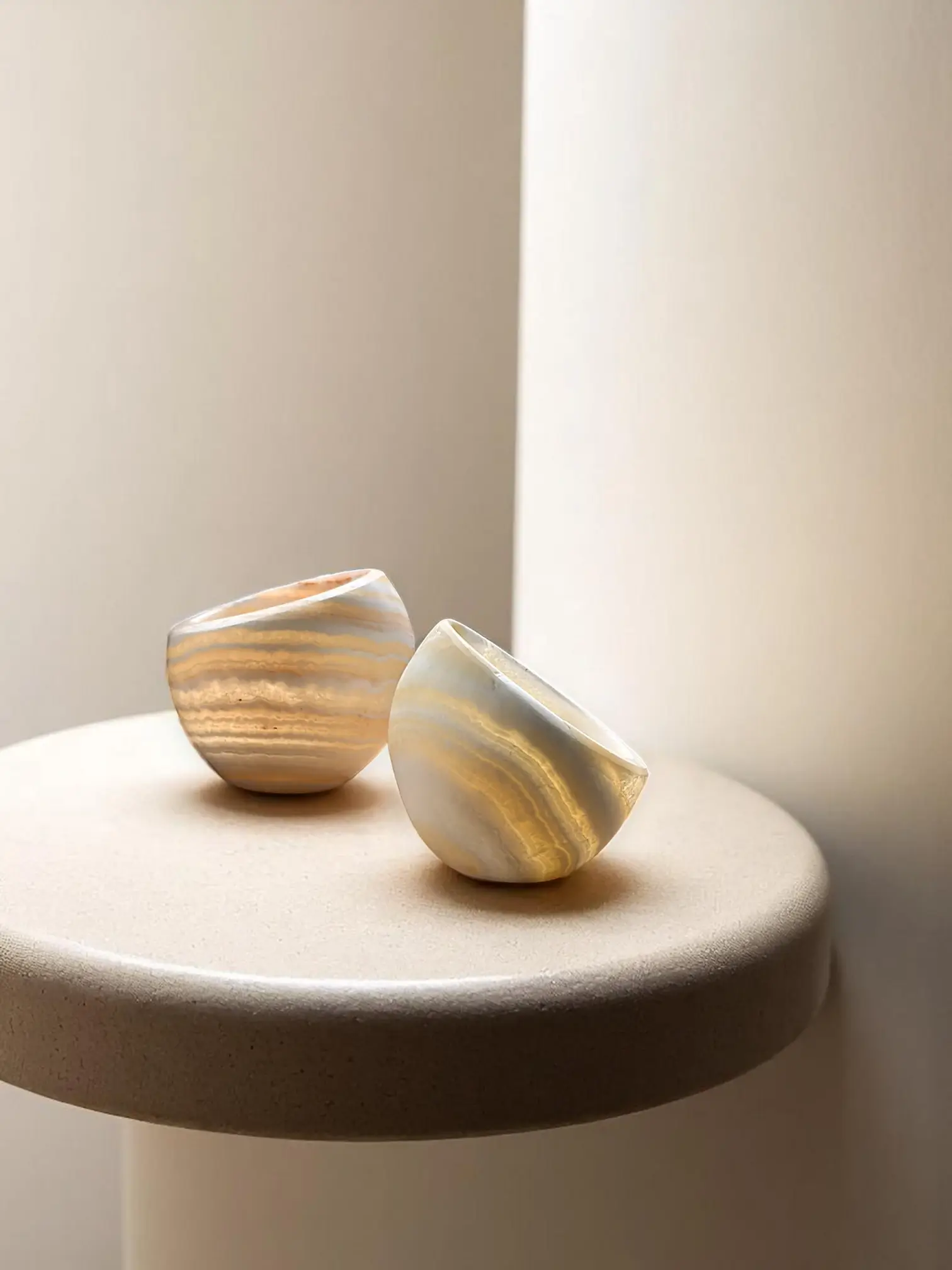 Crafted from translucent alabaster with soft, flowing veining — each piece reveals the raw charm of natural stone.