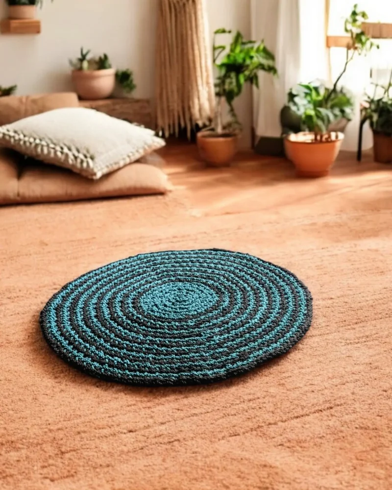 Each rug is crafted entirely by hand, giving it a rich texture and a subtly raised spiral structure that feels as good as it looks.