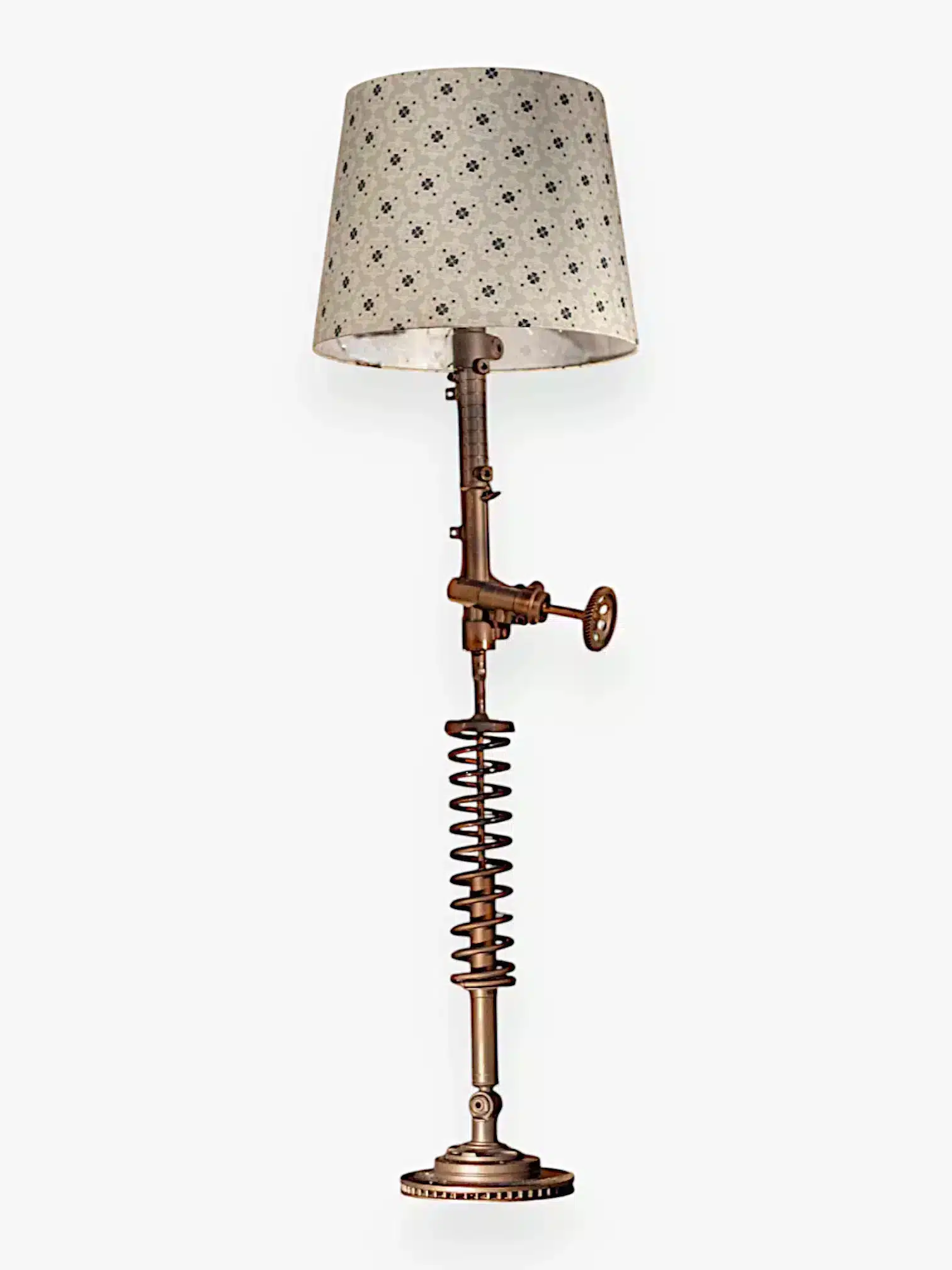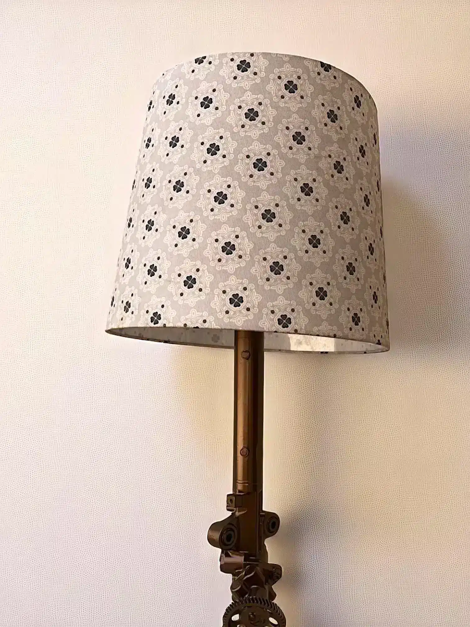 This lamp doesn’t just illuminate — it tells a story. Born from discarded machine parts and elevated with artisan skill, it’s both functional lighting and a sustainable conversation piece.