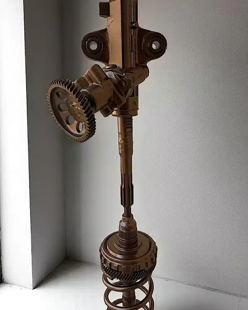 Crafted from salvaged crankshafts, gears, and cams — each lamp repurposes the raw beauty of industrial engineering.