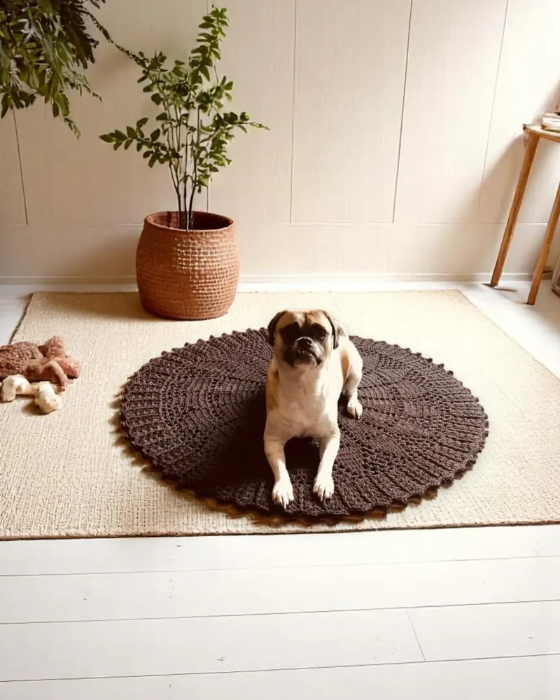 Whether placed on the floor, draped over a table, or used as a cozy accent in a reading nook, this rug adds handcrafted warmth and character to any space.