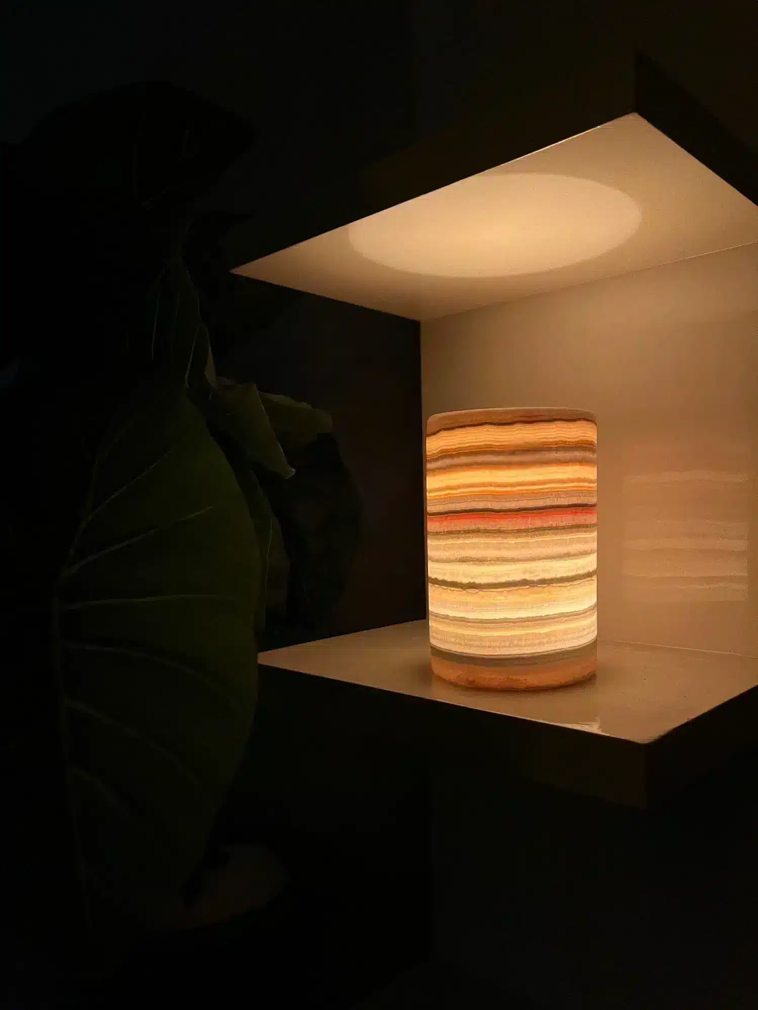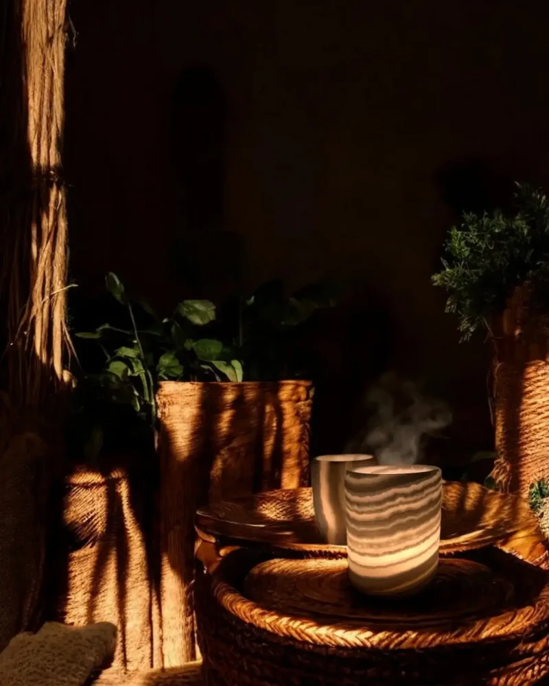 Each holder is handmade from ecological alabaster. No two are alike — every grain, layer, and translucent swirl is part of what makes this set quietly unique.