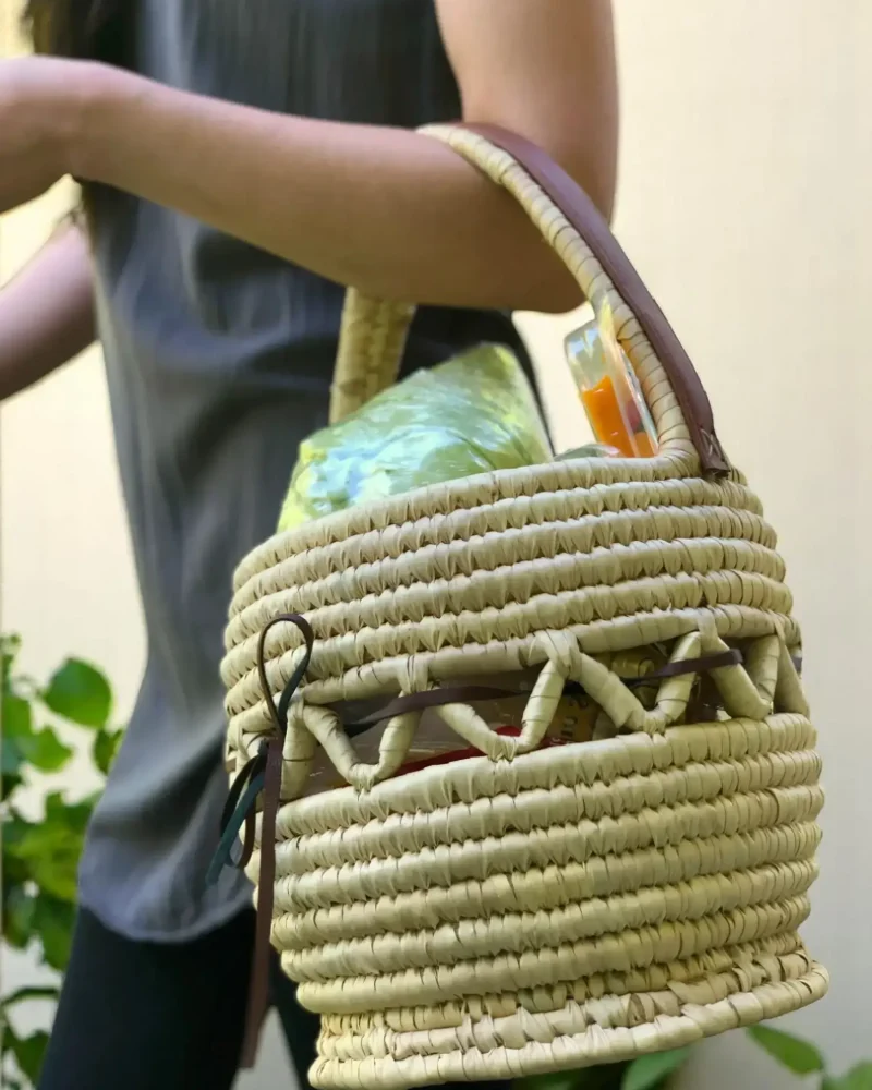 The basket is handmade using dried palm leaves — a durable, renewable material that brings a soft, earthy tone and sturdy structure to every piece.
