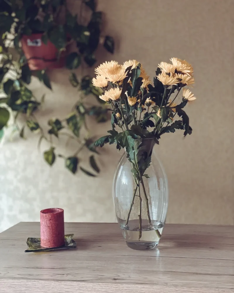 With its smooth oval shape and narrow neck, it suits fresh flowers, dried stems, or even decorative stones in any space.