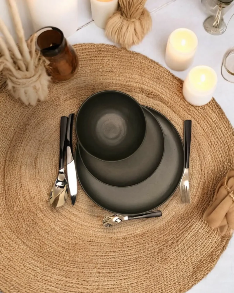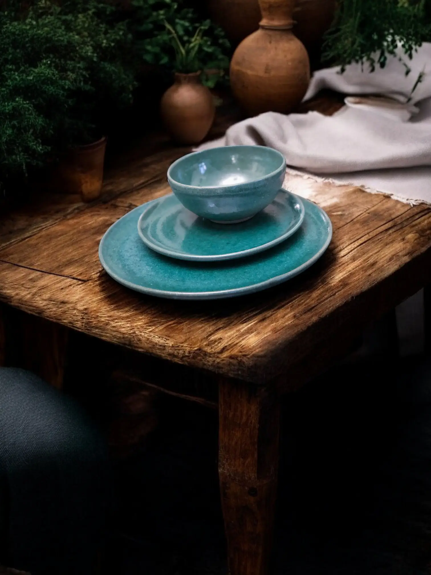Made from natural clay and finished with a lead-free glaze, this set balances function with authenticity. The weight, smooth edges, and subtle variations reflect a thoughtful process rooted in slow craft.