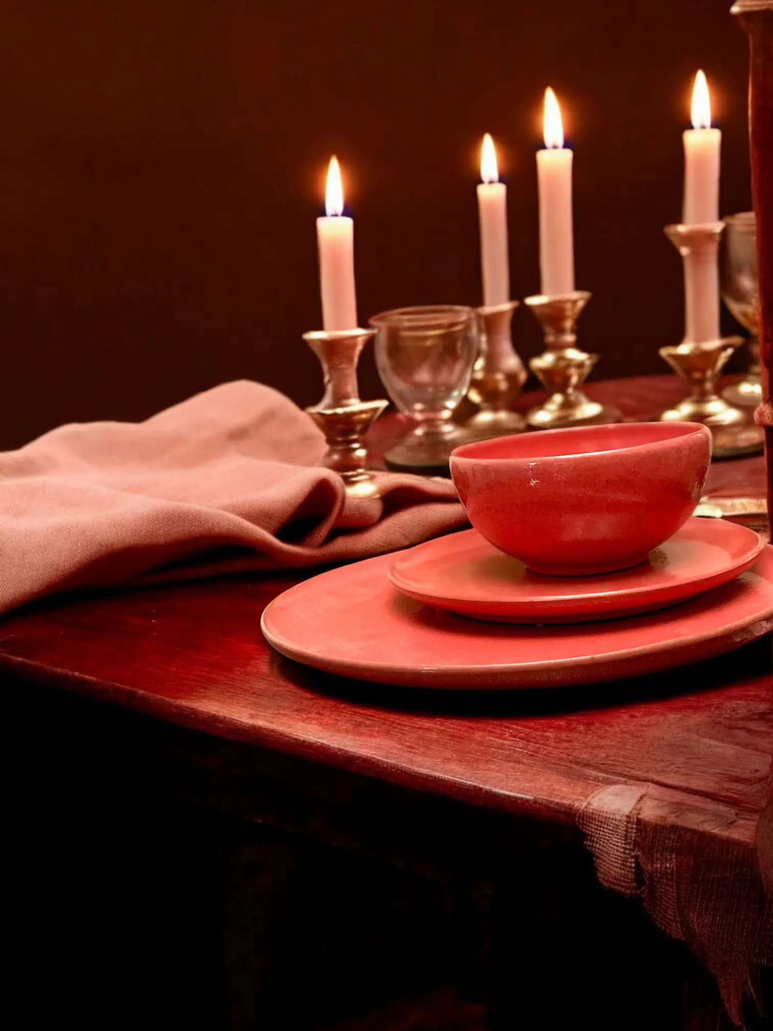 Each piece in this ceramic set is wheel-thrown and hand-glazed, creating a warm, tactile finish that celebrates imperfection. The deep, earthy red glaze adds boldness without overpowering — inviting you to serve with intention and style.