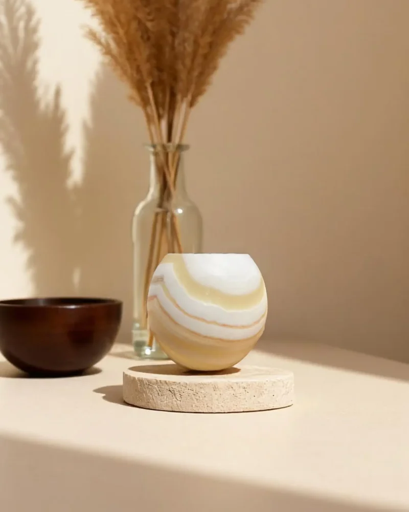 Carved from translucent alabaster with delicate, flowing grain — each piece is naturally unique.
