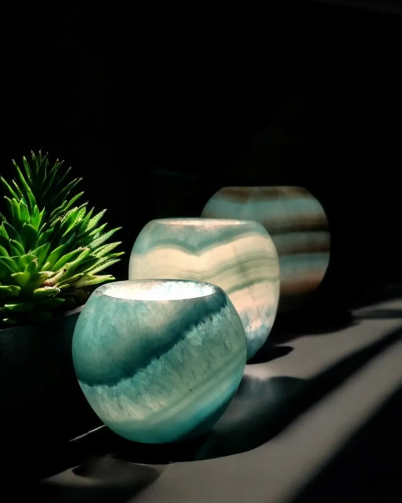 Every holder is shaped and polished by hand into a smooth, rounded form that softly diffuses candlelight.