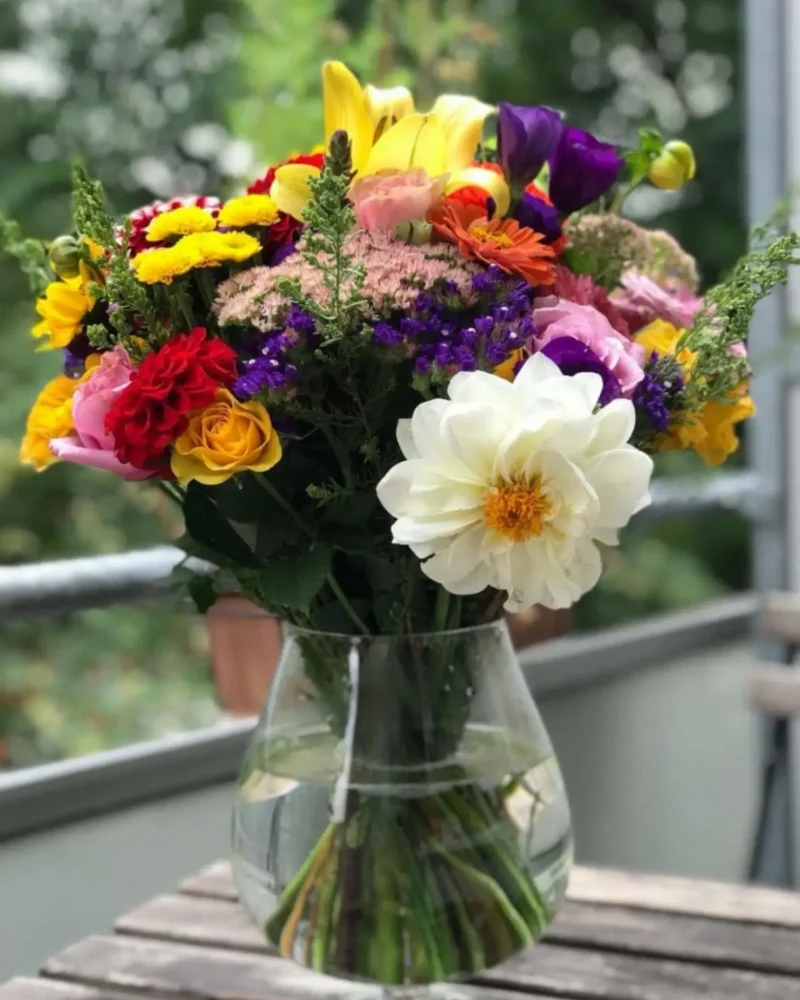 This hand-blown vase features a wide bowl and stable foot — perfect for showcasing florals or seasonal accents with elegance.