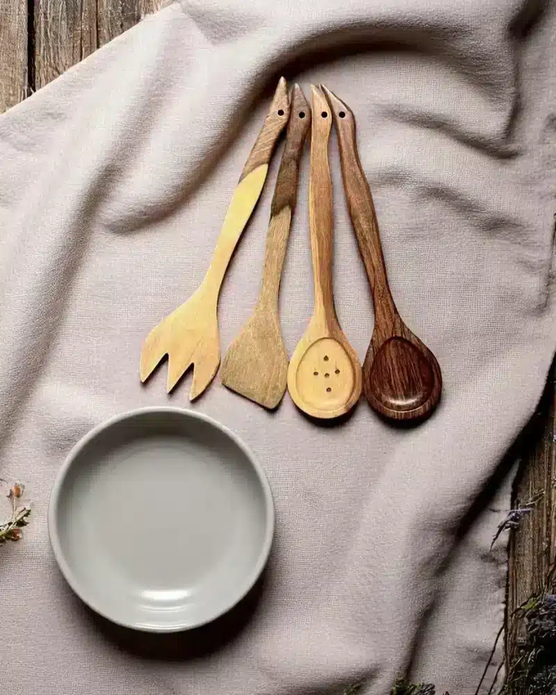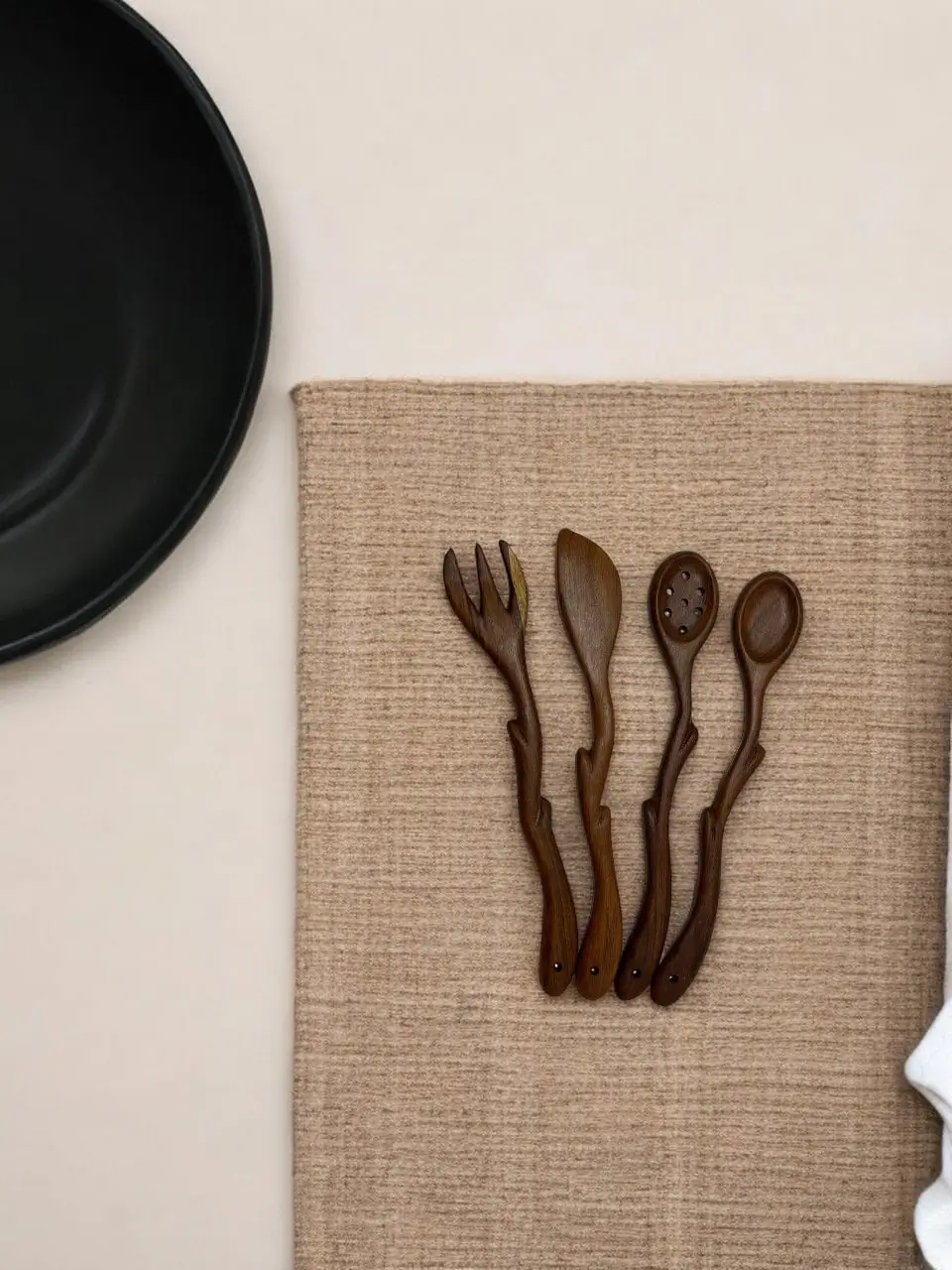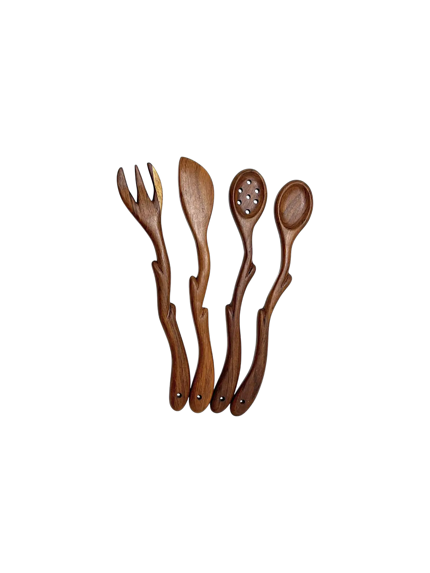 Each utensil is shaped, sanded, and smoothed entirely by hand. Artisans follow the natural grain of the Sheesham wood, letting its rich texture and warmth guide the form. The result is not just a tool — but a tactile, long-lasting object with character in every line.