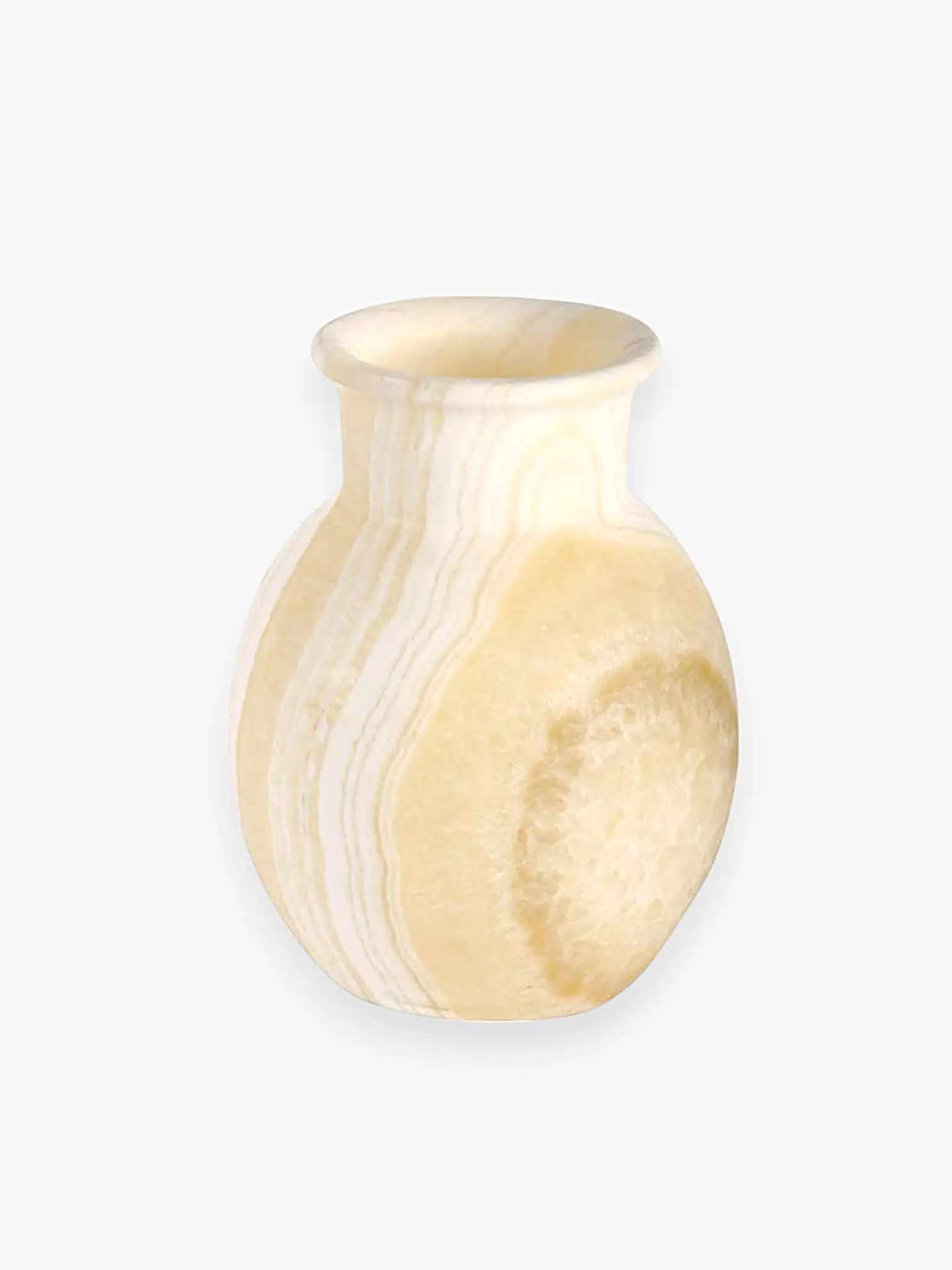 Carved from pure alabaster, each lamp reveals flowing grain patterns that glow warmly when lit.