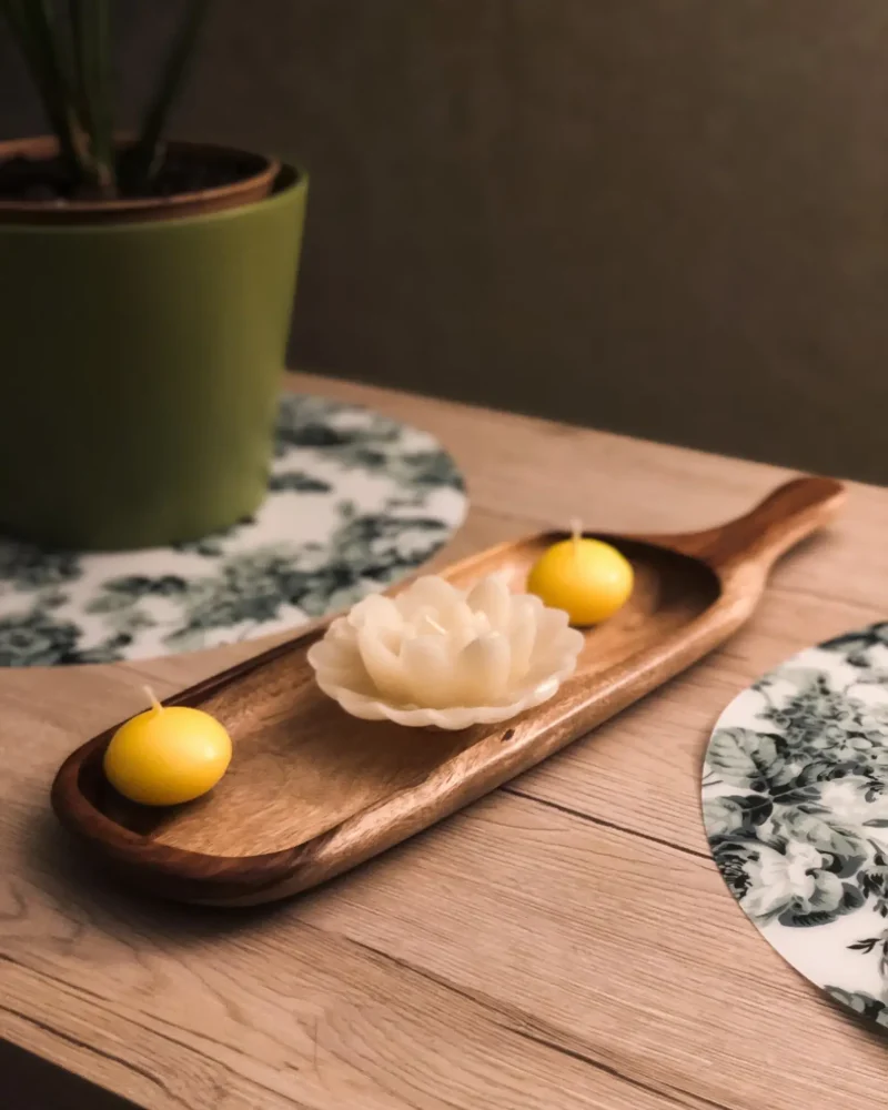 Made from solid Sheesham wood, this tray balances minimalism and warmth. It’s a gentle accent piece that quietly complements any setting — from morning coffee to evening rituals.